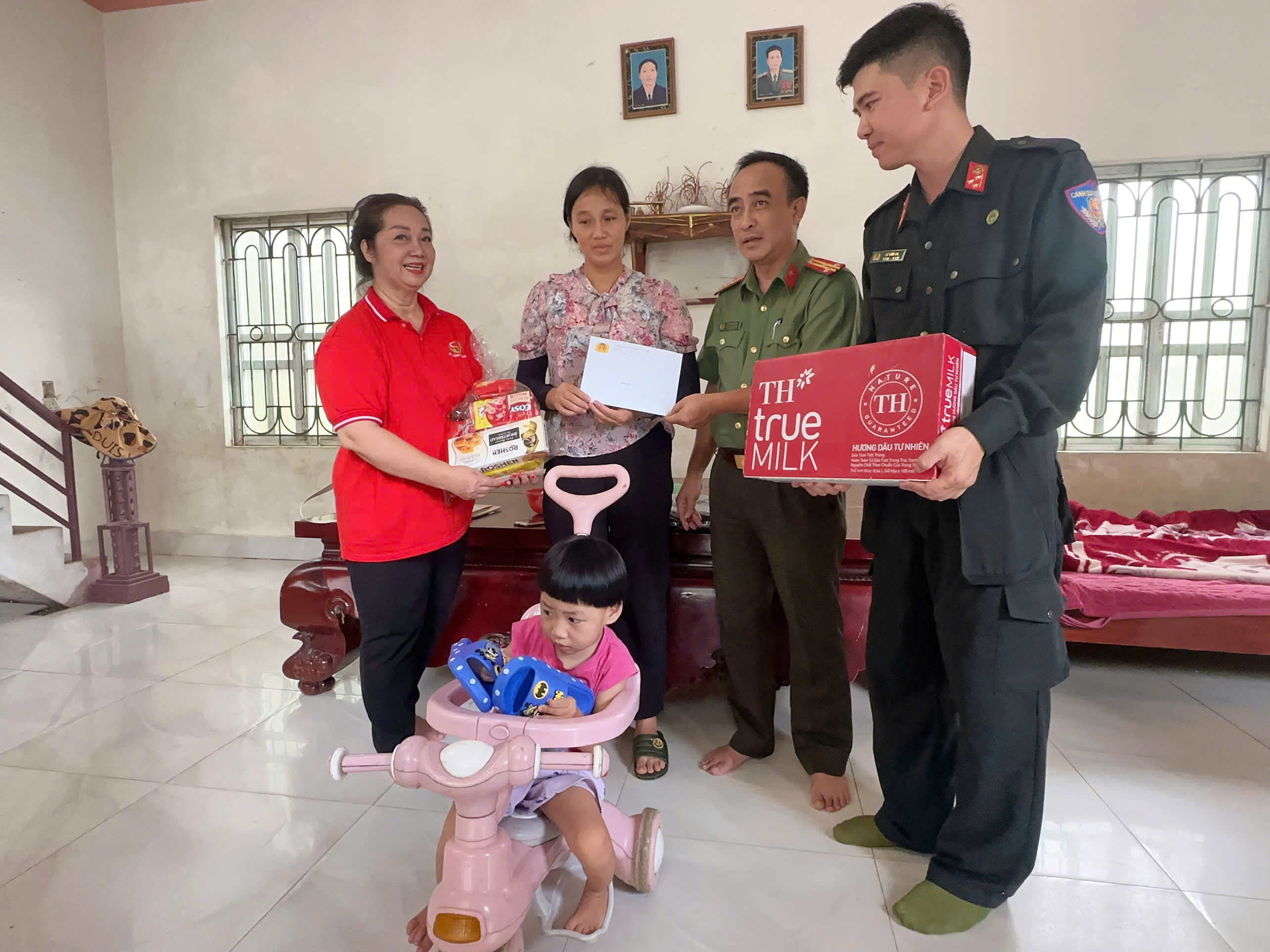Các đơn vị cũng đến thăm, tặng quà là tiền mặt, bánh kẹo tới 2 em nhỏ có hoàn cảnh khó khăn trên địa bàn xã