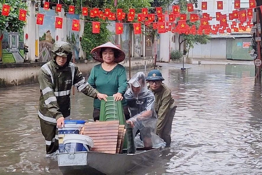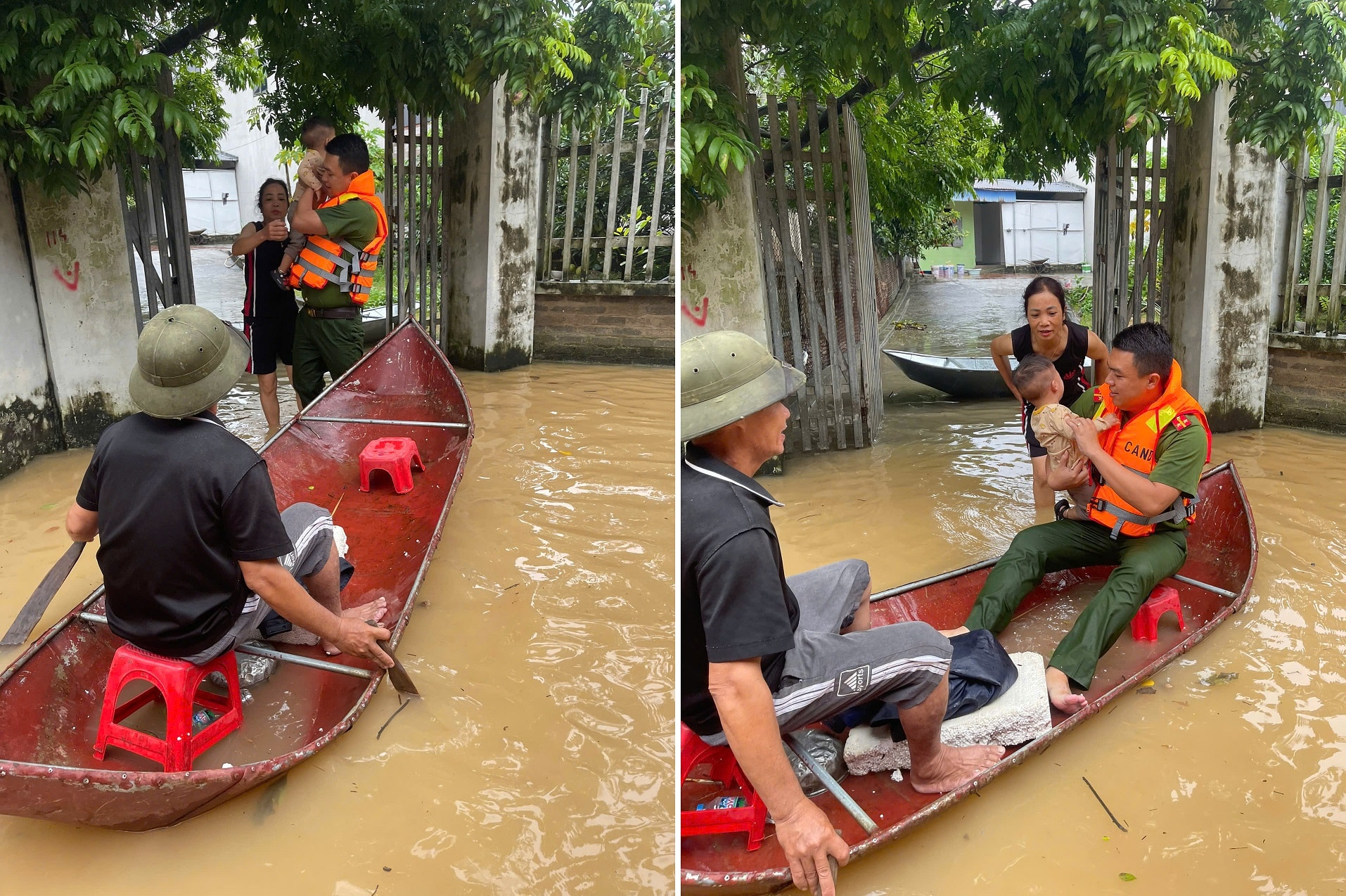 Công an phường Ba Đình sơ tán người dân ra khỏi vùng ngập lụt