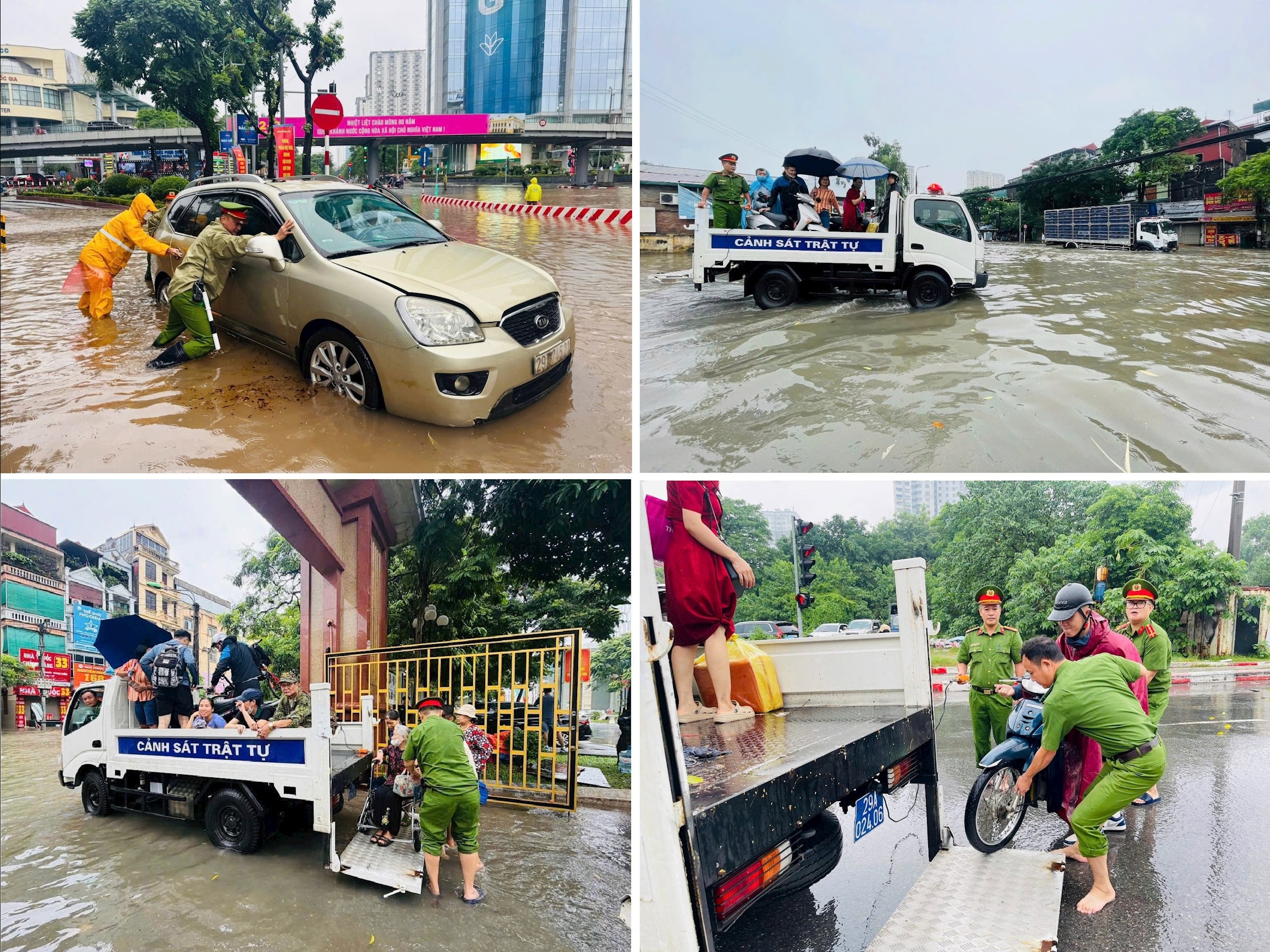 Phòng CSGT Công an TP. Hà Nội đã huy động tối đa quân số ứng trực tại các tuyến, địa bàn trọng điểm, đặc biệt là khu vực có nguy cơ ngập úng, ùn tắc. Các tổ công tác phối hợp với lực lượng Công an cơ sở để hướng dẫn, điều tiết giao thông, đồng thời sẵn sàng hỗ trợ người dân khi cần thiết.