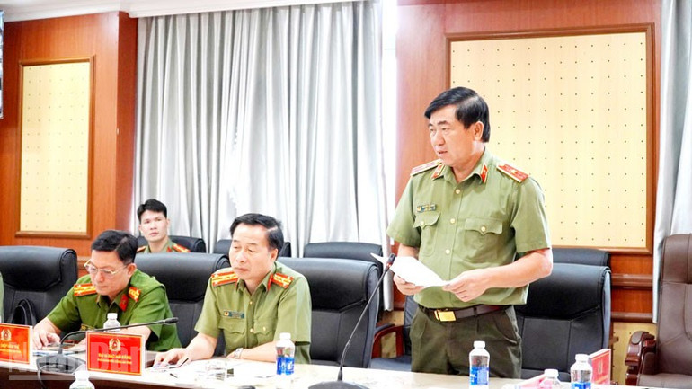 Thiếu tướng Nguyễn Văn Hận, Giám đốc Công an tỉnh An Giang phát biểu.