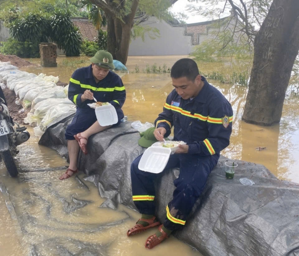 Bữa cơm ngày lũ của CBCS Công an Bắc Ninh.