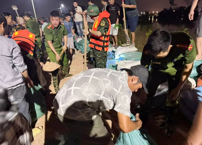 Từ trước đó, lực lượng Công an đã cùng nhân dân gia cố các điểm có nguy cơ bị nước dâng tràn vào khu dân cư