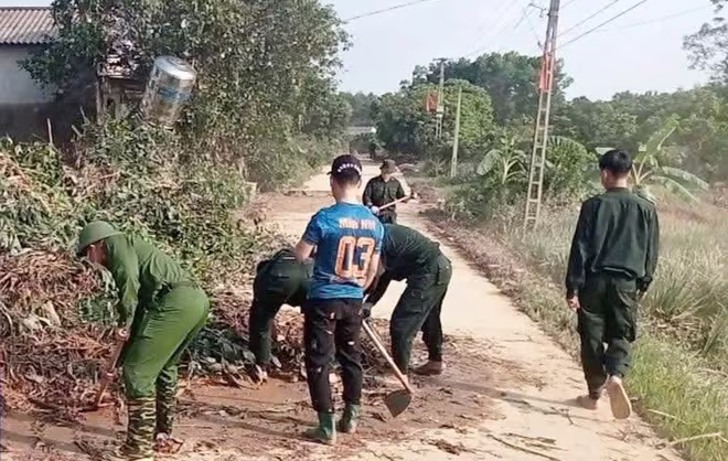 Từ chiều 9-10-2025, tại các xã Xuân Lương, Đồng Kỳ, Yên Thế… hàng trăm cán bộ, chiến sĩ Công an xã phối hợp với lực lượng Cảnh sát cơ động đã có mặt tại những điểm bị ngập nặng, giúp người dân dọn bùn đất, thu gom rác thải, khơi thông cống rãnh, rửa sạch đường làng, ngõ xóm, trường học, trạm y tế.