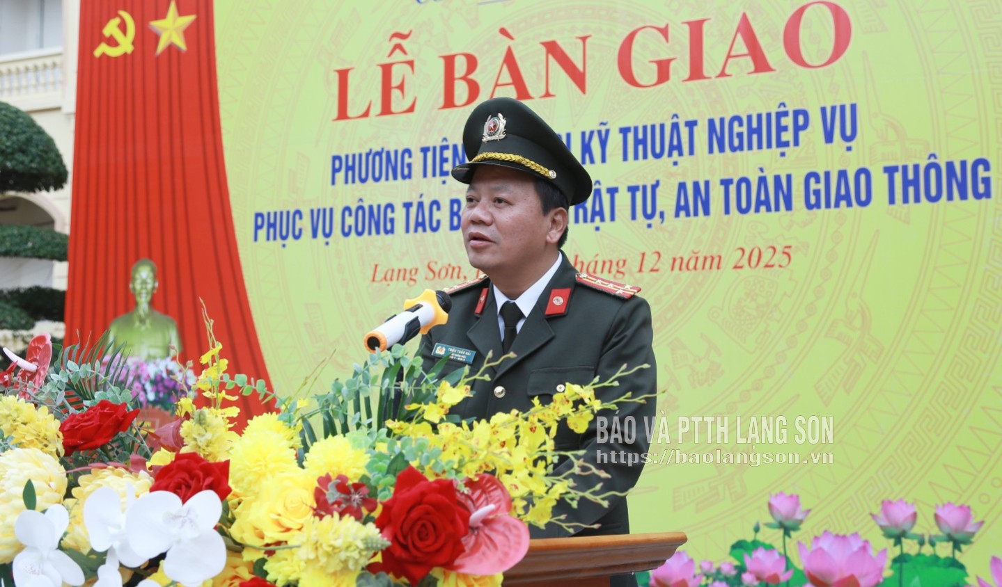Phát biểu tại lễ bàn giao, lãnh đạo Công an tỉnh đề nghị Phòng Cảnh sát Giao thông sau khi tiếp nhận tiến hành kiểm tra nghiệm thu đầy đủ về chất lượng các phương tiện, thiết bị được bàn giao; khẩn trương xin giấy phép, đăng ký đối với các thiết bị chuyên dùng theo quy định và đưa ngay các thiết bị này vào phục vụ công tác, trước mắt là đảm bảo an ninh trật tự, trật tự an toàn giao thông phục vụ các sự kiện chính trị quan trọng của đất nước, của địa phương và dịp Tết Bính Ngọ 2026.