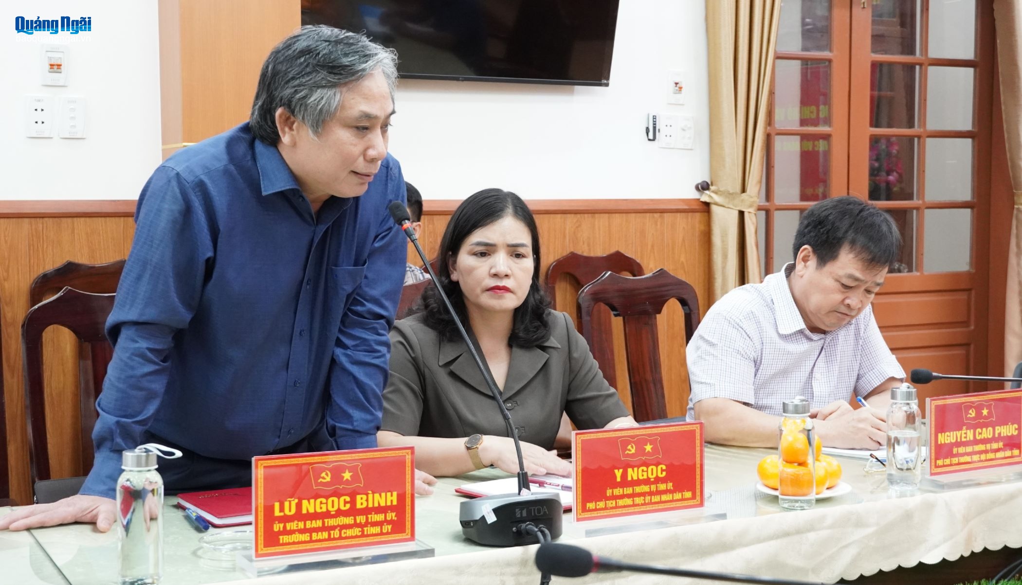 Ủy viên Ban Thường vụ Tỉnh ủy, Trưởng ban Tổ chức Tỉnh ủy Lữ Ngọc Bình trao đổi tại buổi làm việc.