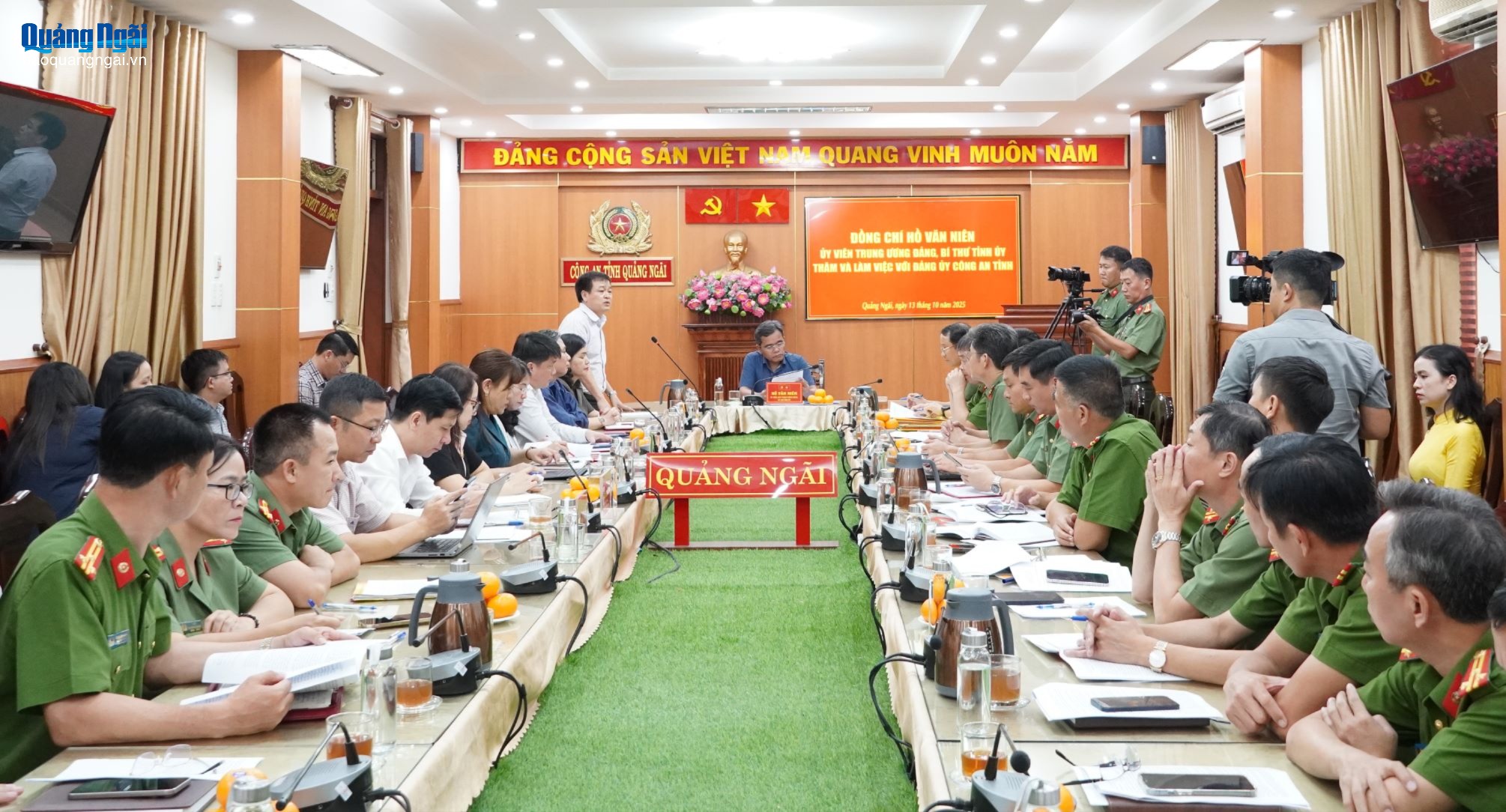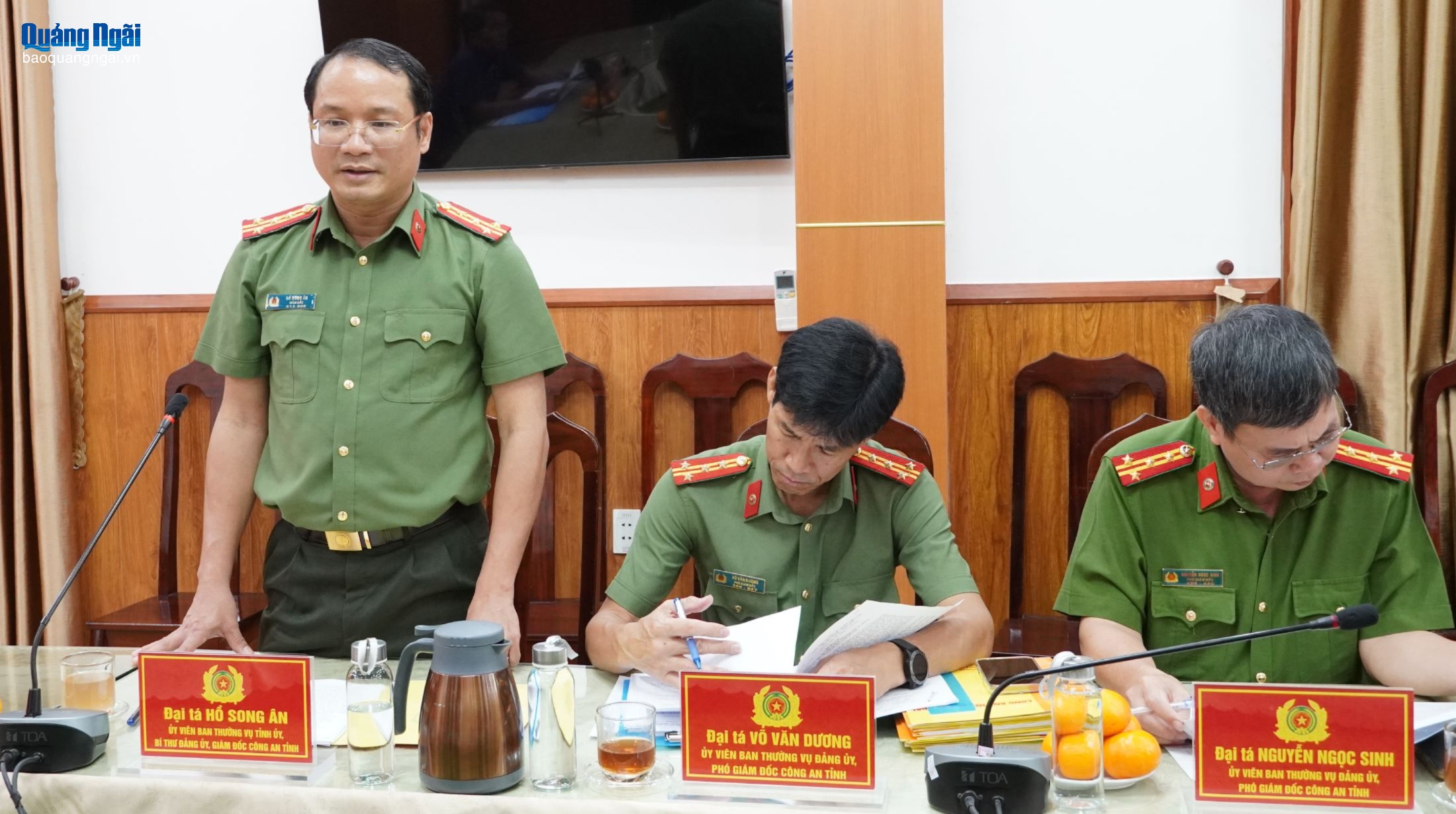 Đại tá Hồ Song Ân, Giám đốc Công an tỉnh báo cáo tại buổi làm việc.
