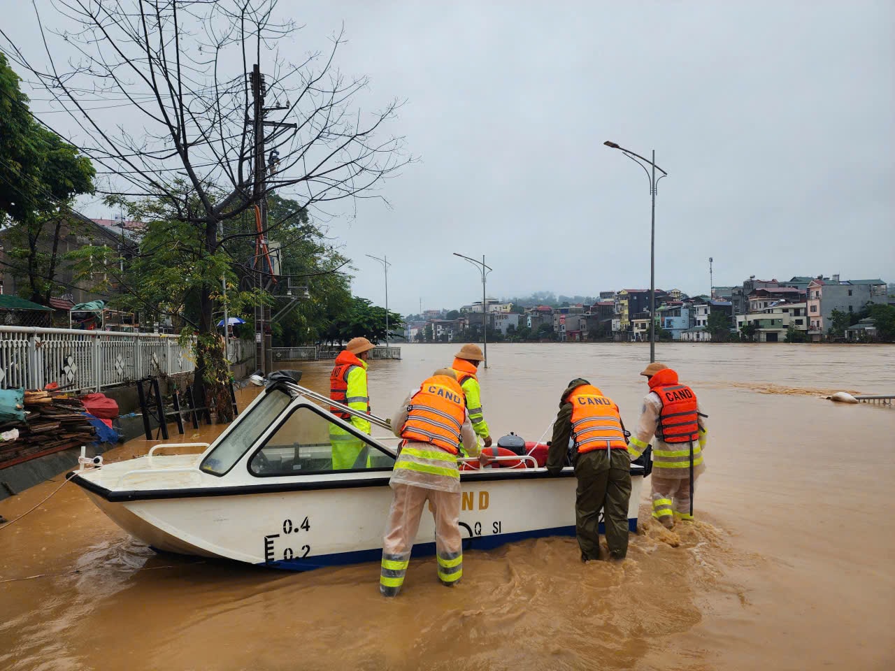 Thường trực Trung tâm chỉ huy tác chiến Công an tỉnh được yêu cầu bảo đảm quân số trực, chủ động nắm tình hình, tham mưu xử lý các tình huống phát sinh, đồng thời chỉ huy, điều phối toàn bộ lực lượng, phương tiện trong công tác ứng phó, khắc phục hậu quả bão, lũ. Lực lượng, phương tiện như ca nô, xuồng máy, áo phao, dây cứu hộ… được chuẩn bị sẵn sàng để triển khai ứng cứu tại các điểm xung yếu; hỗ trợ sơ tán người dân, phong tỏa khu vực nguy hiểm, cắm biển cảnh báo, rào chắn tại các tuyến đường bị ngập, cầu yếu, khu vực sạt lở, hướng dẫn người dân không di chuyển qua những đoạn đường nguy hiểm.