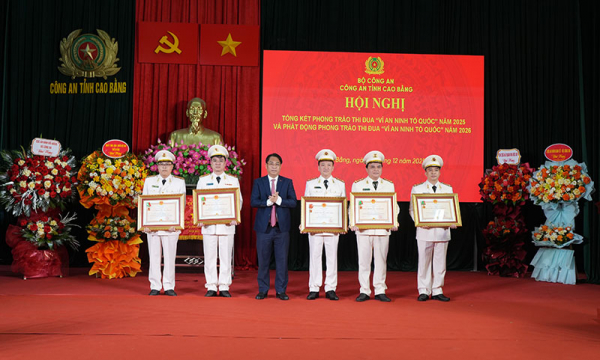 Với những thành tích đạt được, Công an tỉnh Cao Bằng vinh dự được Bộ Công an tặng Cờ thi đua xuất sắc trong phong trào thi đua “Vì an ninh Tổ quốc” năm 2025; 3 cá nhân được tặng Huân chương Chiến công hạng Ba, 1 cá nhân được tặng Huân chương Bảo vệ Tổ quốc hạng Ba; 269 tập thể, 829 cá nhân được các cấp, các ngành khen thưởng.