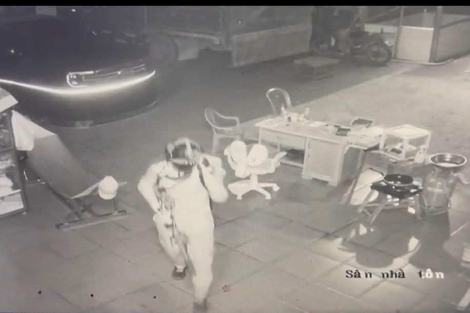 Thời điểm xảy ra vụ án có một người đàn ông đội mũ bảo hiểm trùm kín mặt và đeo khẩu trang xuất hiện trong sân nhà nạn nhân