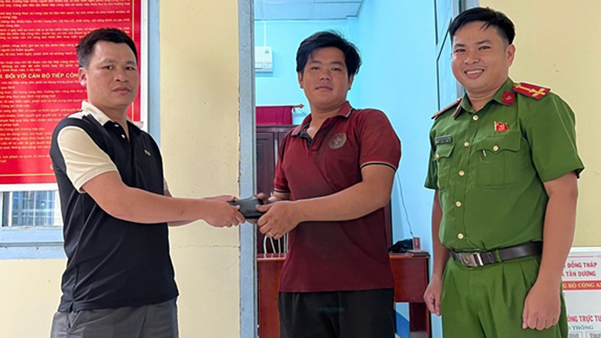 Mới đây, Đại úy Võ Văn Phong, cán bộ thuộc Cơ sở Cai nghiện ma túy số 1, (Phòng Cảnh sát phòng, chống tội phạm về ma túy, công an tỉnh Đồng Tháp) nhặt được 01 chiếc ví bên trong có chứa nhiều tiền mặt và giấy tờ tùy thân mang tên Phạm Tấn Đ., (sinh năm 2003, hộ khẩu thường trú tại ấp Phú An, xã Tân Dương, tỉnh Đồng Tháp) trên đường giao thông. Ngay sau đó, Đại úy Võ Văn Phong đã mang đến công an xã Tân Dương, tỉnh Đồng Tháp để liên hệ người bị đánh rơi, Công an xã đã tiến hành xác minh, tìm và liên lạc với người đánh rơi. Sau đó, công an xã Tân Dương đã xác định được chủ nhân chiếc ví trên nên liên hệ anh Đ., đến trụ sở Công an xã để nhận lại chiếc ví cùng toàn bộ tài sản và giấy tờ tùy thân bị rơi mất.