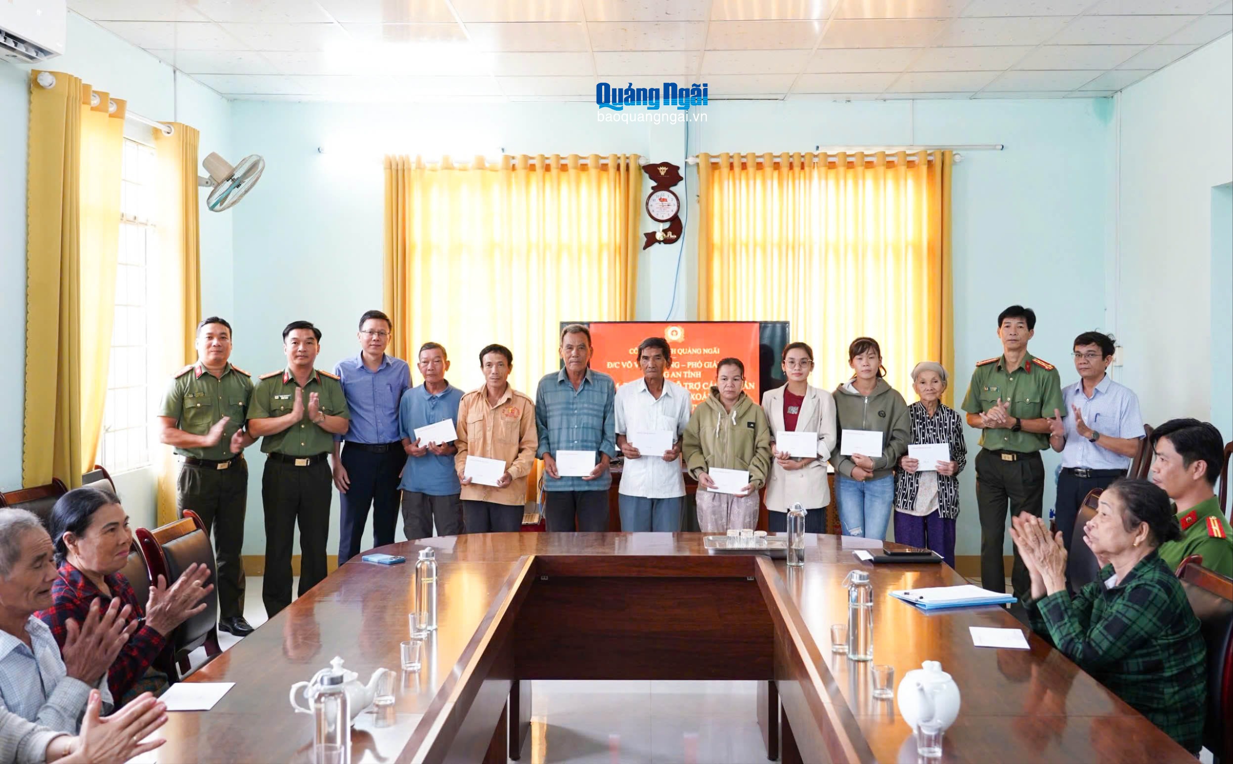 Theo đó, lãnh đạo Công an tỉnh đã trao hơn 100 triệu đồng cho 29 hộ dân bị thiệt hại do lốc xoáy tại 2 địa phương. Trong đó, có 7 suất trao cho các hộ dân ở phường Đức Phổ. Đây là những hộ dân có nhà ở và các công trình bị ảnh hưởng nặng từ trận lốc xoáy.