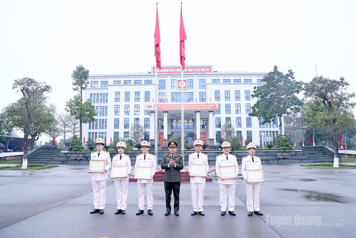Nhân dịp này, thừa ủy quyền của Bộ trưởng Bộ Công an, đồng chí Giám đốc Công an tỉnh đã trao Bằng khen của Bộ trưởng Bộ Công an cho 4 tập thể, 6 cá nhân; Giấy khen của Giám đốc Công an tỉnh cho 2 tập thể, 20 cá nhân về các thành tích xuất sắc trong công tác đảm bảo an ninh chính trị và giữ gìn trật tự an toàn xã hội trên địa bàn tỉnh.