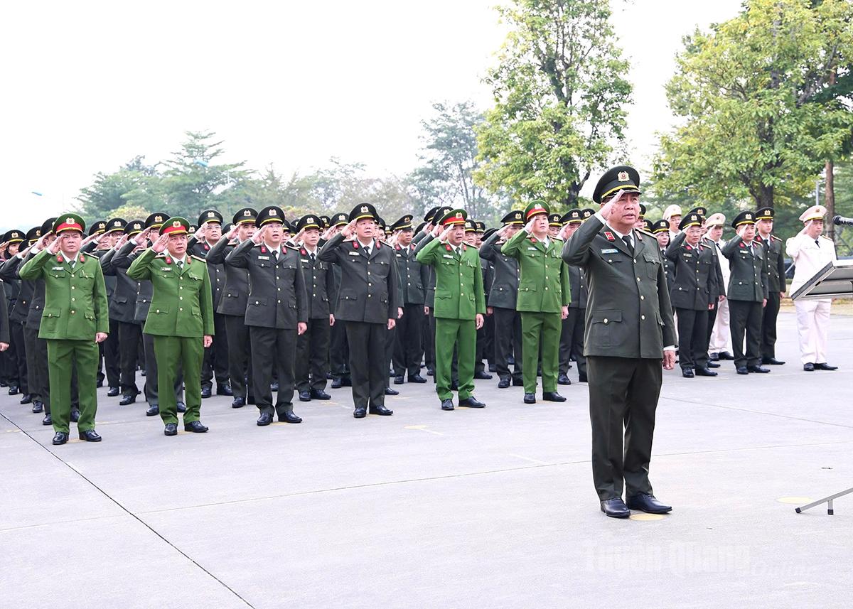 Phát biểu tại Lễ chào cờ, Giám đốc Công an tỉnh Nguyễn Đức Thuận ghi nhận, biểu dương những thành tích mà các đơn vị đã đạt được trong tháng vừa qua. Đồng chí đề nghị các đơn vị cần tăng cường bảo đảm an ninh khu vực biên giới, quản lý người nước ngoài, bảo đảm an ninh cơ sở, an ninh công nhân nhất là trong thời điểm cuối năm; chuẩn bị các điều kiện mở đợt cao điểm tấn công, trấn áp các loại tội phạm dịp Tết Nguyên đán Bính Ngọ năm 2026; duy trì và thực hiện hiệu quả các nhiệm vụ, cao điểm thuộc Đề án 06; thực hiện nghiêm các quy định về công tác xây dựng Đảng, xây dựng lực lượng, công tác chính trị tư tưởng, công tác thanh tra, kiểm tra, giám sát; chuẩn bị chu đáo các điều kiện phục vụ tổng kết công tác năm 2025, triển khai nhiệm vụ công tác năm 2026.