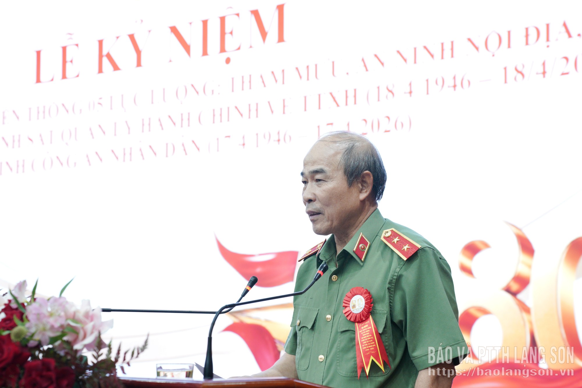 Trung tướng Trần Đăng Yến, nguyên Phó Tổng cục trưởng Tổng cục An ninh, Bộ Công an, nguyên Giám đốc Công an tỉnh Lạng Sơn phát biểu tại lễ kỷ niệm
