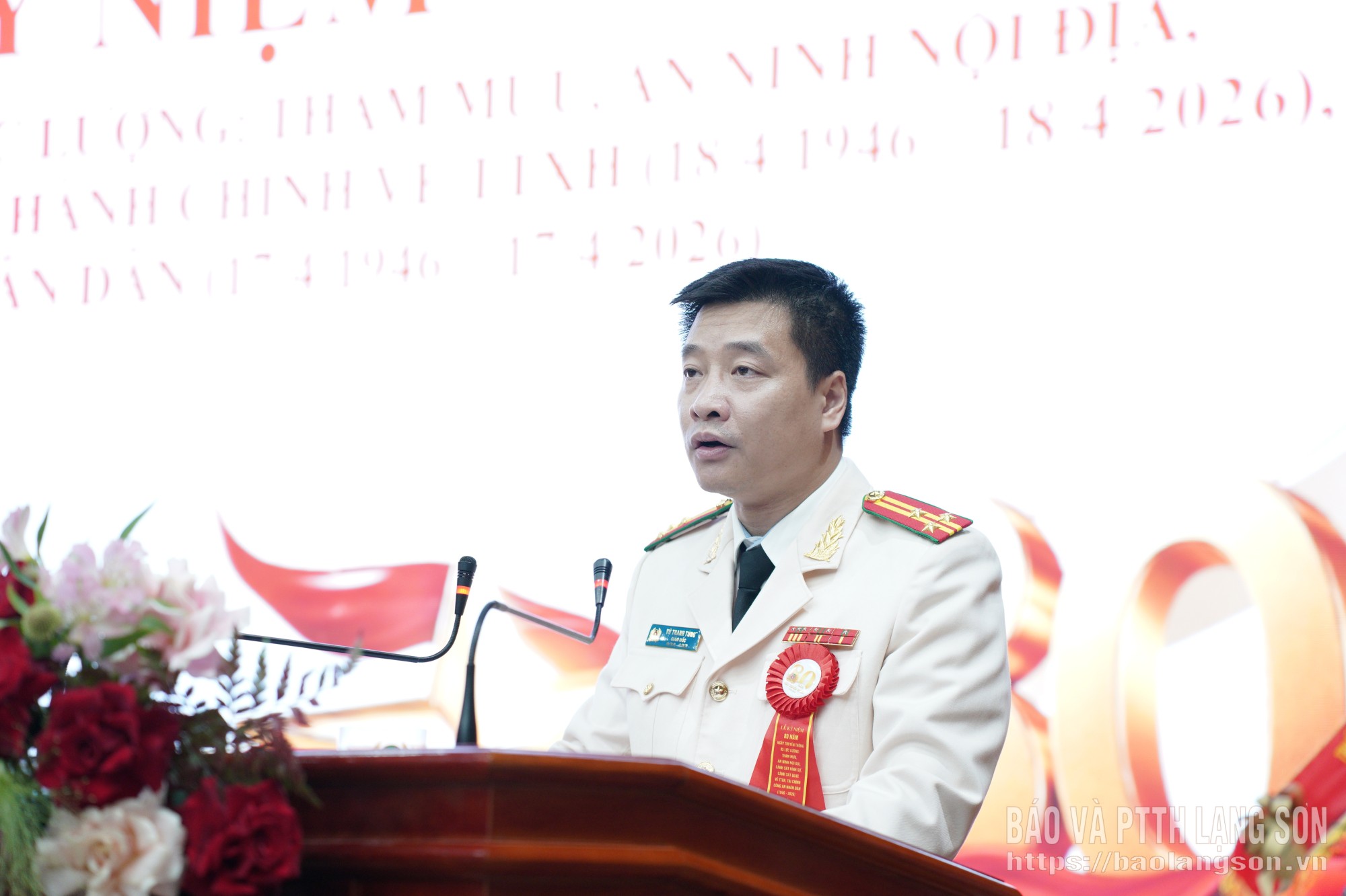 Đồng chí Phó Giám đốc Công an tỉnh trình bày diễn văn kỷ niệm