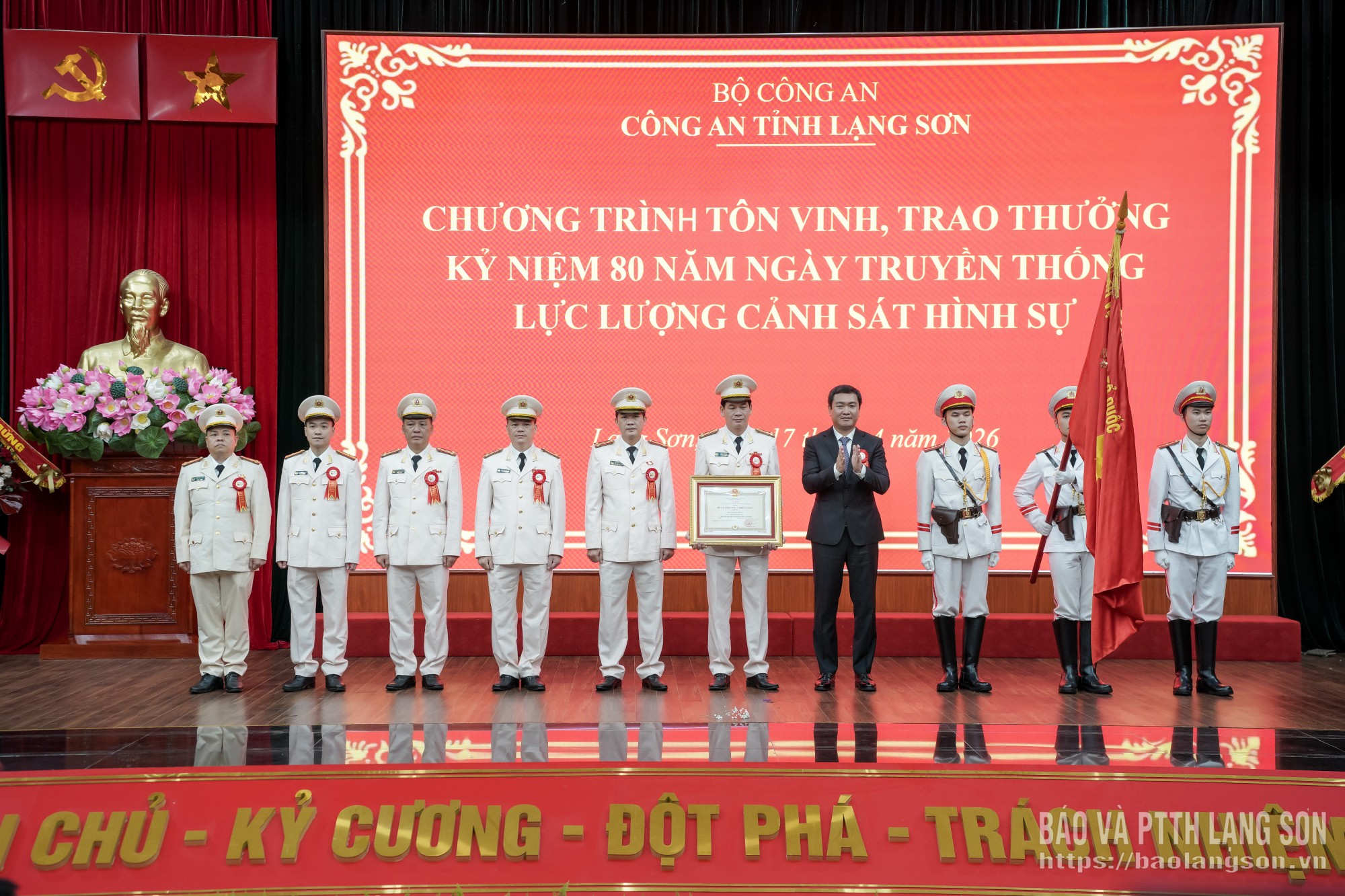 Tại lễ kỷ niệm, thừa ủy quyền của Chủ tịch nước, đồng chí Chủ tịch UBND tỉnh trao tặng Huân chương Chiến công hạng Ba cho Phòng Cảnh sát hình sự, Công an tỉnh Lạng Sơn