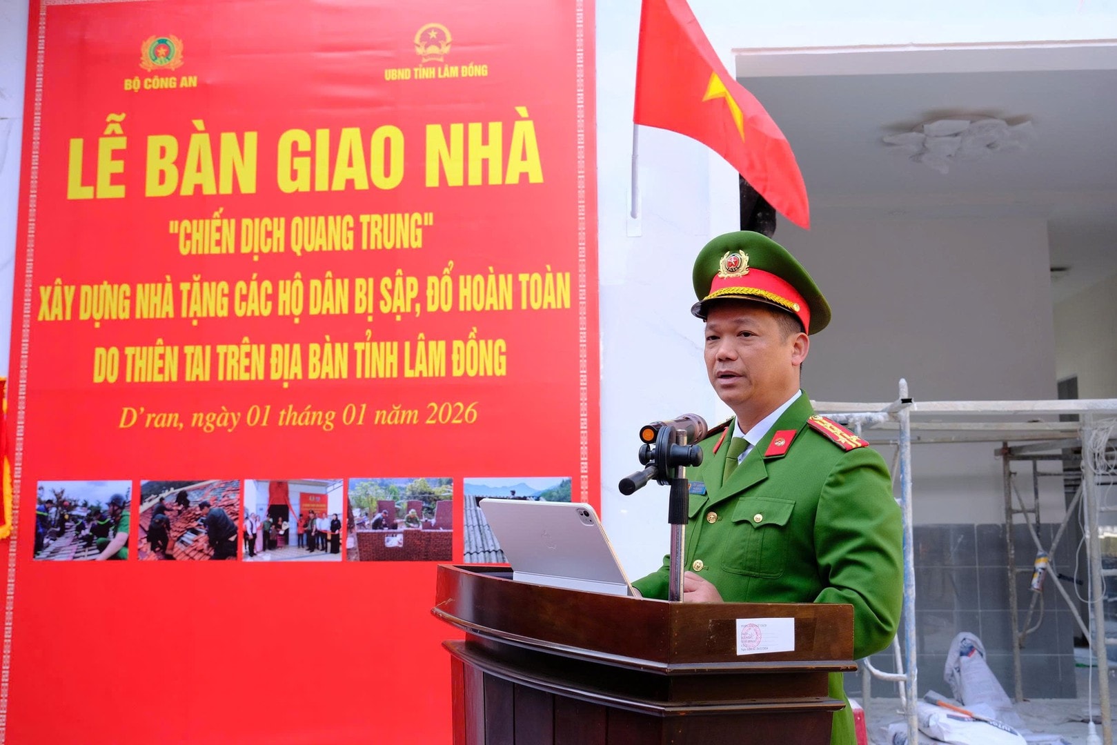 Trong ngày đầu năm mới 2026, Công an tỉnh Lâm Đồng đã tổ chức bàn giao nhà mới cho các hộ dân chịu thiệt hại nặng nề do thiên tai trên địa bàn tỉnh. Đây là những công trình thuộc Chiến dịch Quang Trung, do lực lượng Công an tỉnh chủ trì thực hiện nhằm giúp người dân sớm ổn định cuộc sống và thể hiện tinh thần vì nhân dân phục vụ.