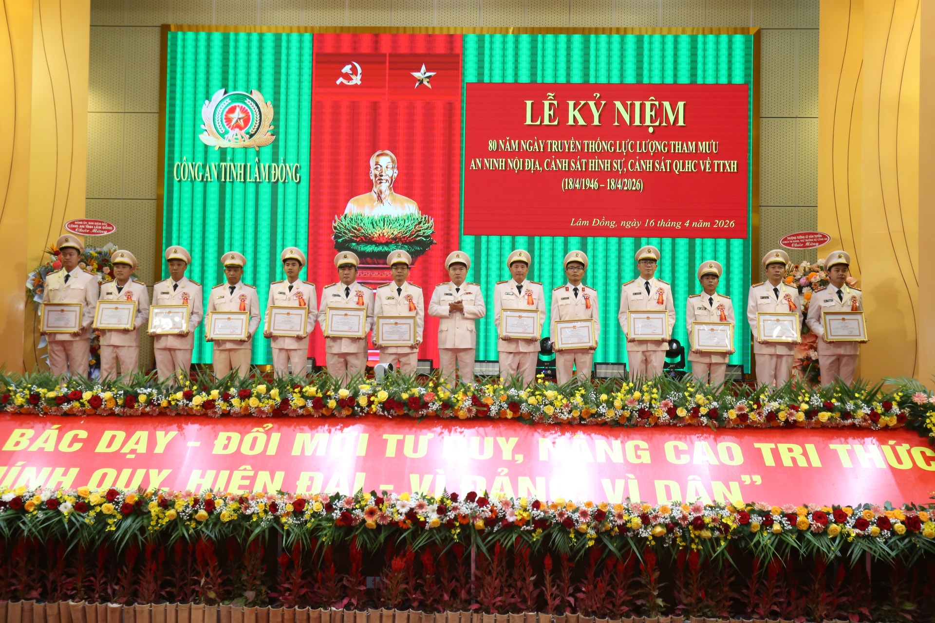 Nhân dịp này, có 6 tập thể và 22 cá nhân được Chủ tịch UBND tỉnh tặng Bằng khen; Giám đốc Công an tỉnh tặng Giấy khen cho 18 tập thể và 115 cá nhân vì có thành tích xuất sắc trong các mặt công tác công an, góp phần đảm bảo an ninh, trật tự trên địa bàn tỉnh Lâm Đồng.