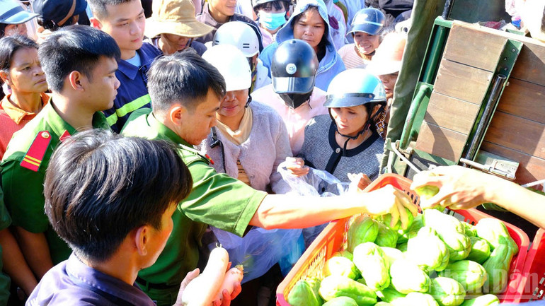 Ngày 2/12, Phòng Hậu cần và Phòng Công tác chính trị, Công an tỉnh Lâm Đồng cùng các đơn vị liên quan vận chuyển gần 34 tấn rau, củ, quả các loại đến tỉnh Khánh Hòa hỗ trợ người dân bị thiệt hại nặng do mưa lũ vừa qua.