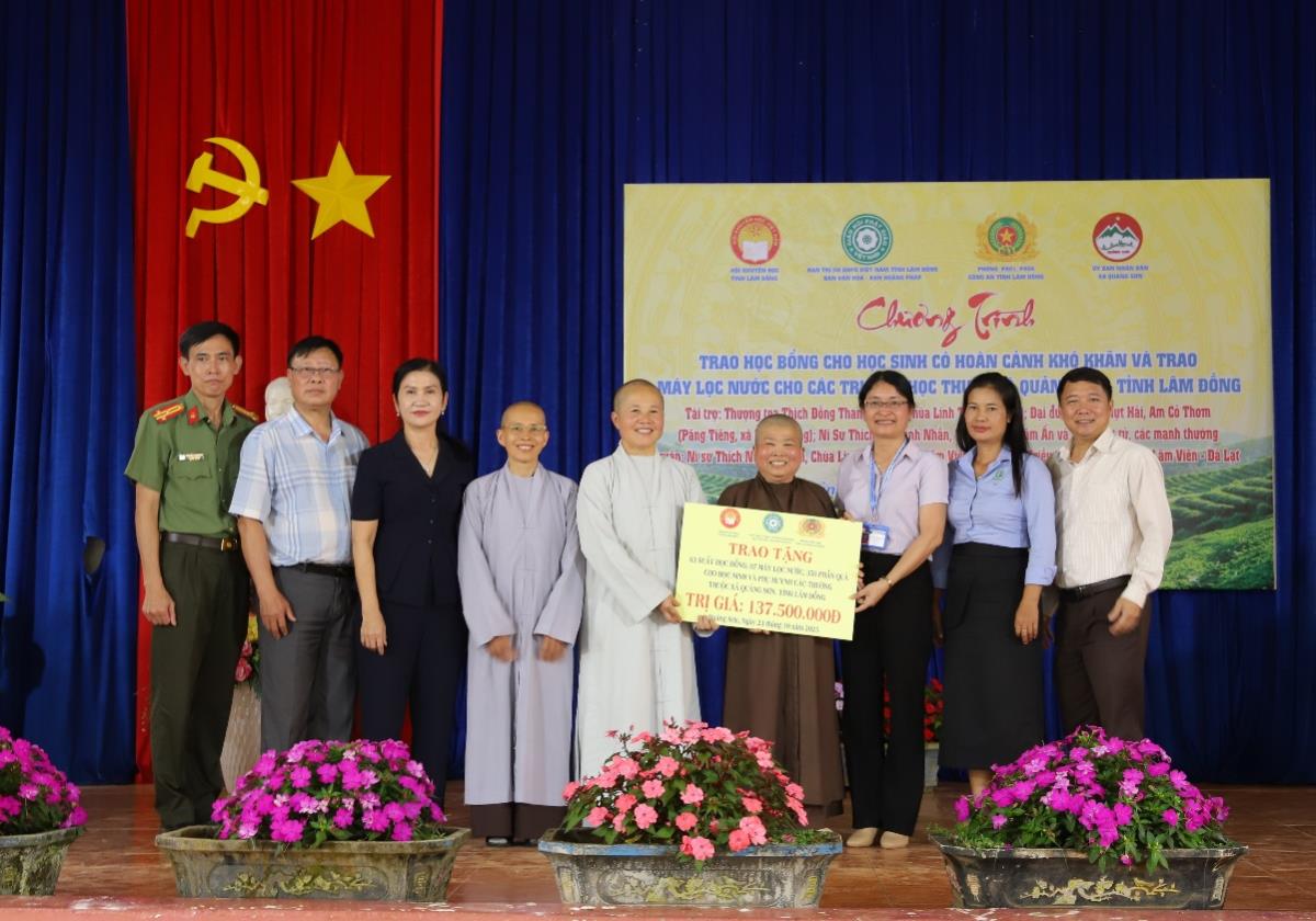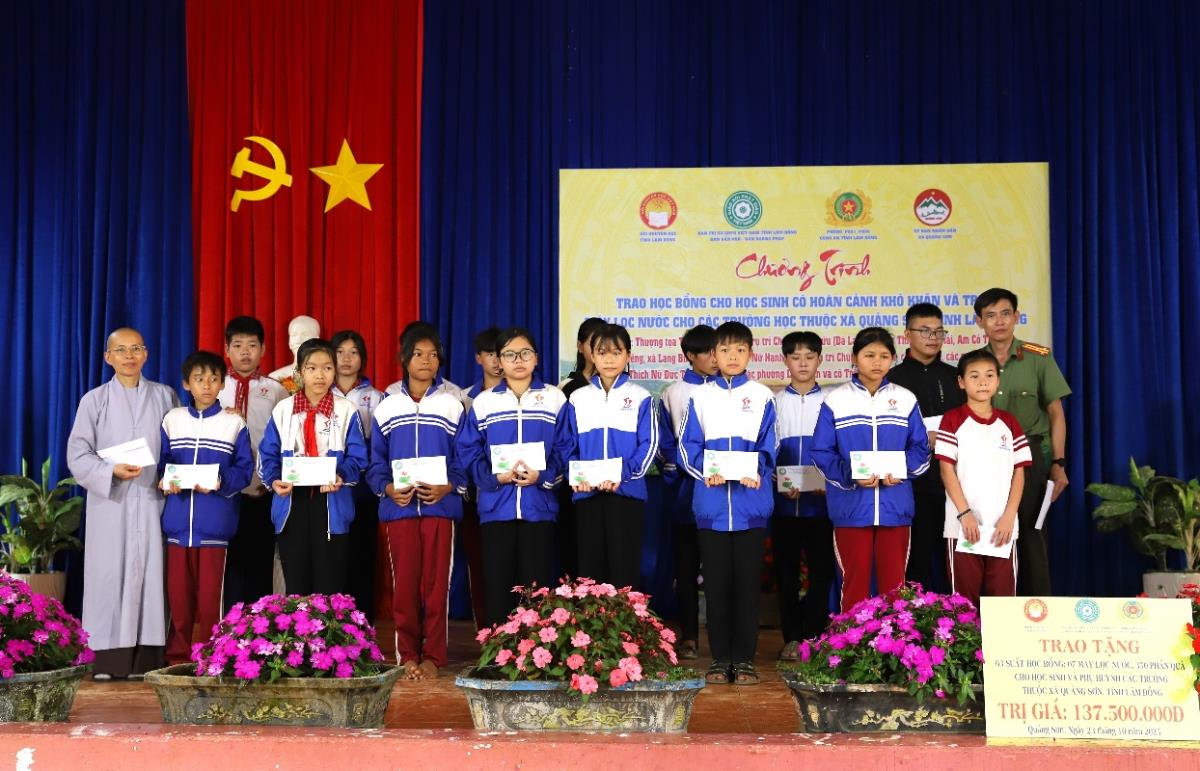 Lực lượng Công an tỉnh Lâm Đồng và các đơn vị trao tặng học bổng cho các em có hoàn cảnh đặc biệt khó khăn
