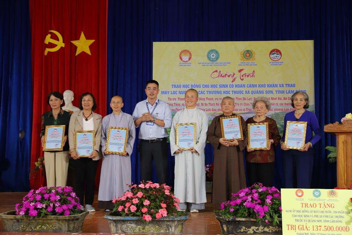 Tại chương trình, đoàn đã trao 60 suất học bổng (mỗi suất 500.000 đồng) cho học sinh có hoàn cảnh khó khăn, vượt khó học giỏi của Trường Tiểu học Nơ Trang Long, Tiểu học Lý Tự Trọng và THCS Hoàng Văn Thụ. Ngoài ra, 3 suất học bổng đặc biệt (mỗi suất 1 triệu đồng) cũng được trao tặng cho các em học sinh có hoàn cảnh đặc biệt khó khăn, trao tặng 7 máy lọc nước và trao tặng 350 phần quà cho học sinh và phụ huynh có hoàn cảnh khó khăn của các trường trên địa bàn xã Quảng Sơn với tổng kinh phí hơn 137 triệu đồng, nhằm động viên tinh thần học tập và chia sẻ những khó khăn trong cuộc sống, cải thiện điều kiện sinh hoạt, đảm bảo nguồn nước sạch cho giáo viên và học sinh các trường vùng sâu, giúp nâng cao chất lượng dạy và học.