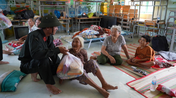 Động viên, an ủi sau khi hộ trợ ngườ dân đến nơi an toàn.