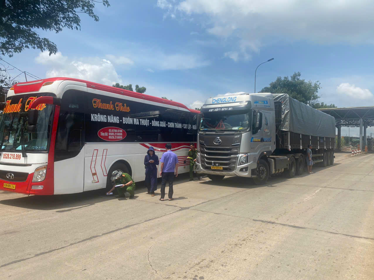 Trước đó, khoảng 15h30 ngày 7/10, Vũ điều khiển xe đầu kéo di chuyển theo Quốc lộ 14 đến đoạn đường thuộc thôn Trúc Sơn (xã Cư Jút, tỉnh Lâm Đồng) thì bị xe khách đi cùng chiều do Phạm Thanh Trung điều khiển vượt qua.