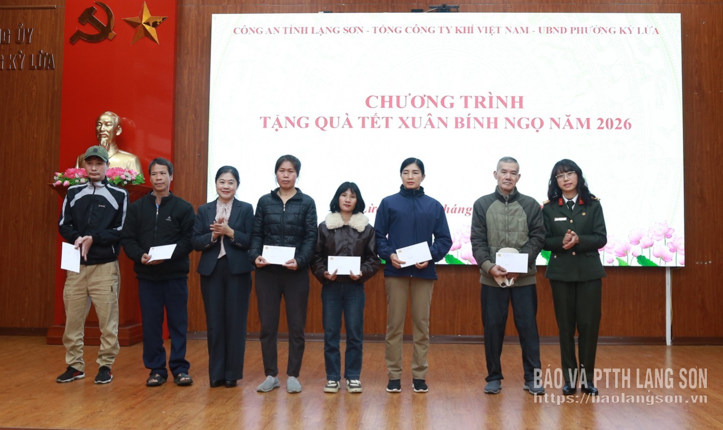 Lãnh đạo Công an tỉnh và lãnh đạo Đảng ủy phường Kỳ Lừa trao quà tết cho người dân