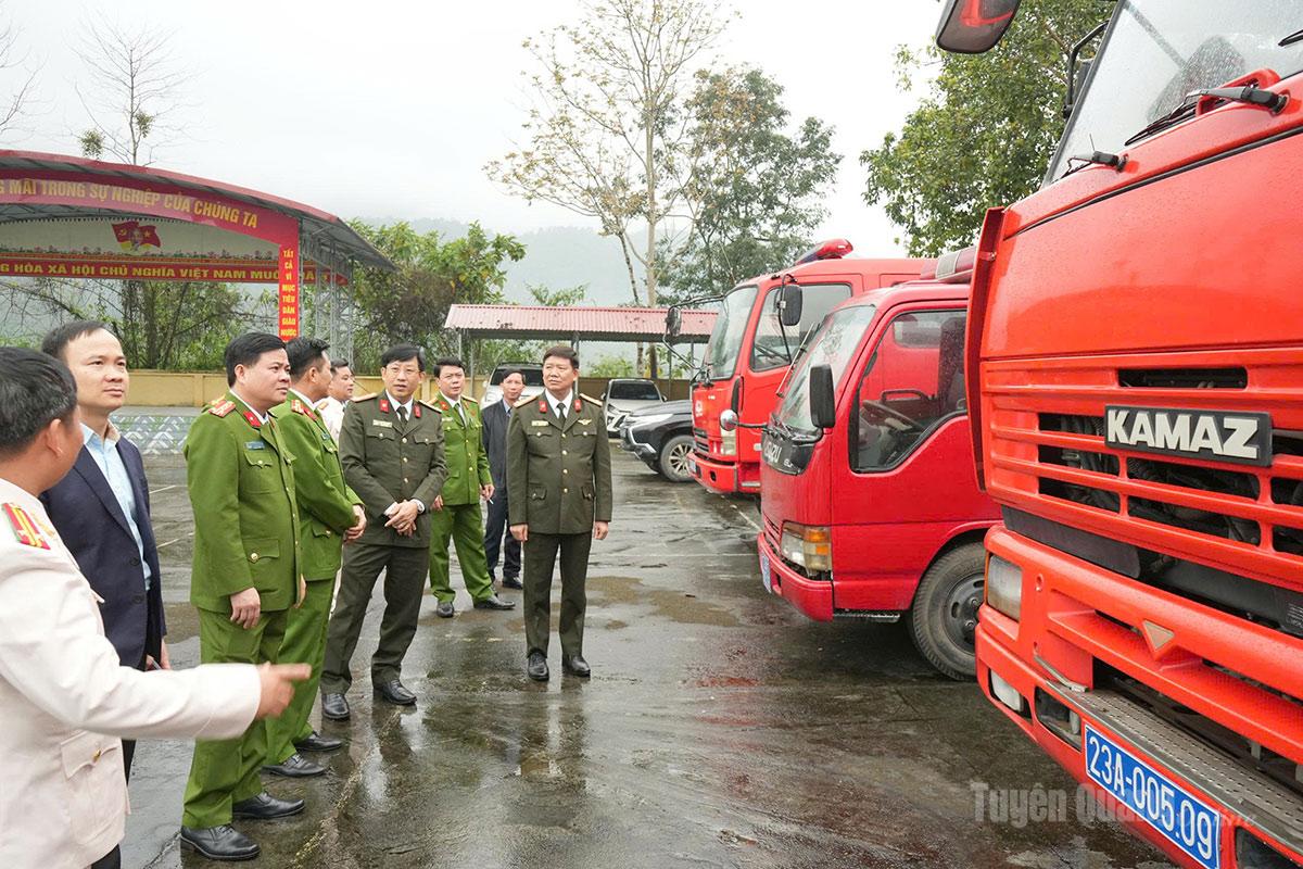 Lãnh đạo Công an tỉnh kiểm tra trang thiết bị, phương tiện của Đội Cảnh sát PCCC & CNCH khu vực Bắc Quang.
