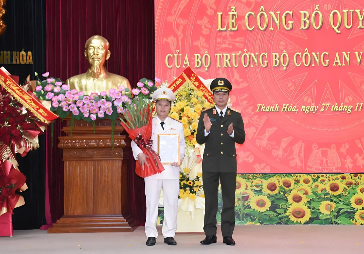 Chiều 27/11, Công an tỉnh Thanh Hóa tổ chức Lễ công bố Quyết định của Bộ trưởng Bộ Công an về việc bổ nhiệm Thượng tá Kim Duy Cương, Trưởng phòng Tổ chức cán bộ giữ chức vụ Phó Giám đốc Công an tỉnh Thanh Hóa.