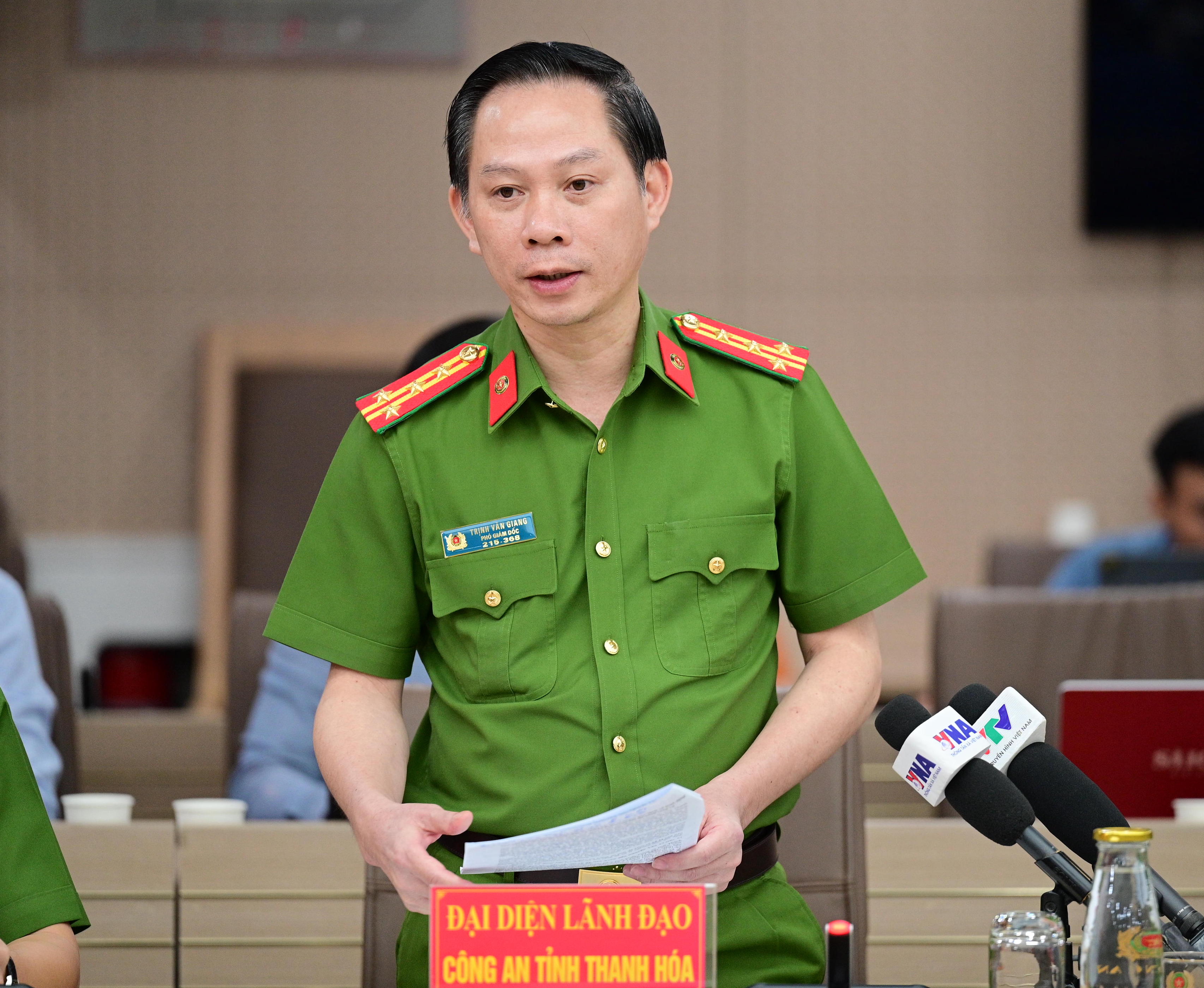Đại tá Trịnh Văn Giang, Phó Giám đốc Công an tỉnh Thanh Hóa, thông tin tại buổi họp báo. Ảnh: ĐỖ TRUNG