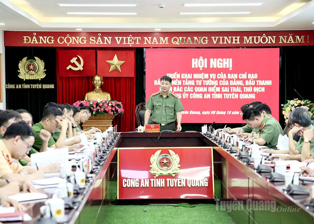 Các đơn vị tiếp tục chủ động nắm bắt tình hình tư tưởng trong cán bộ, chiến sĩ; kịp thời phát hiện, ngăn chặn các biểu hiện lệch lạc, dao động về chính trị, tư tưởng. Đồng thời, nâng cao chất lượng các chuyên trang, chuyên mục, bài viết đấu tranh phản bác các quan điểm sai trái, thù địch; thường xuyên tổ chức hội nghị, tọa đàm, tập huấn nhằm bồi dưỡng kỹ năng, nghiệp vụ cho đội ngũ cán bộ, chiến sĩ làm công tác bảo vệ nền tảng tư tưởng của Đảng; góp phần xây dựng Đảng bộ Công an tỉnh trong sạch, vững mạnh về chính trị, tư tưởng và tổ chức.