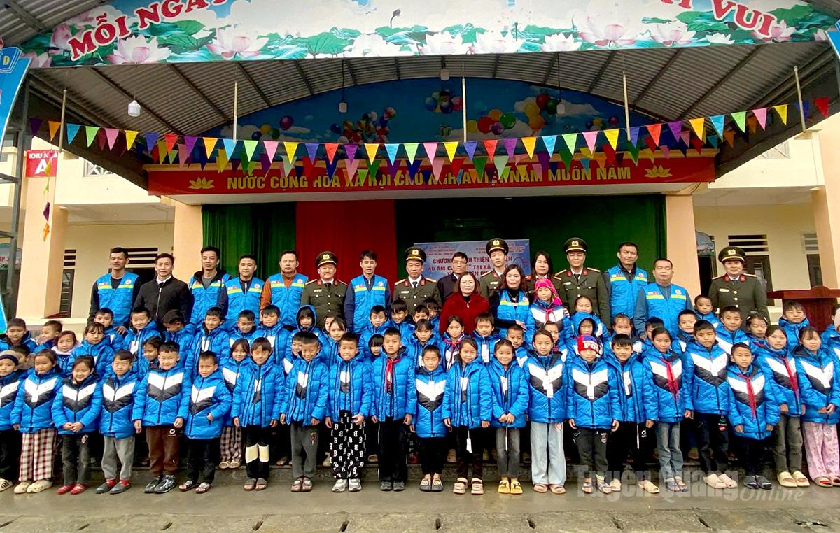 Phòng An ninh nội địa, Công an tỉnh Tuyên Quang trao tặng áo ấm cho học sinh trường PTDT bán trú Tiểu học Tả Ván.