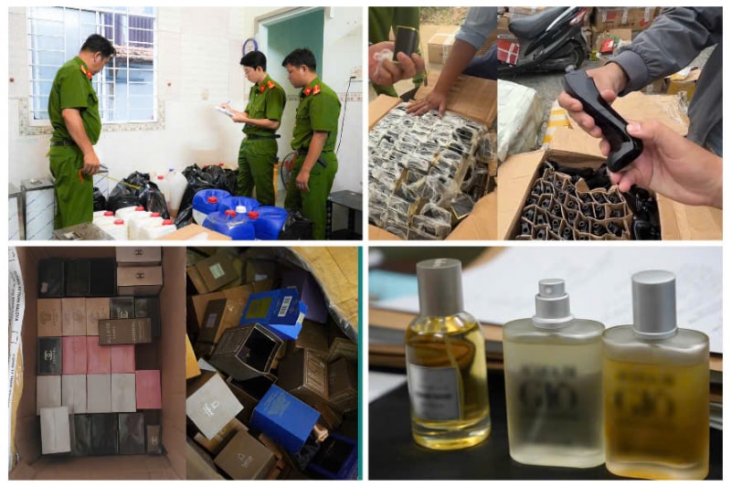 Toàn bộ nguyên liệu bao gồm vỏ chai, hộp, nắp, nhãn hiệu và hóa chất tinh mùi được các đối tượng đặt mua tại chợ Kim Biên (TP Hồ Chí Minh) và thông qua mạng xã hội. Sau đó, hàng hóa được tập kết tại một nhà thuê ở TP Bà Rịa, tỉnh Bà Rịa - Vũng Tàu để trực tiếp sản xuất. Nhằm tránh sự chú ý, nhóm đối tượng đã vận chuyển toàn bộ tang vật và thiết bị máy móc về 3 địa điểm tại TP Cần Thơ để tiếp tục gia công và đưa ra thị trường tiêu thụ.