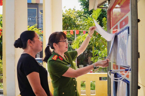 Đại tá Võ Thị Trinh, Phó Giám đốc Công an TP Đà Nẵng kiểm tra công tác bảo đảm ANTT phục vụ bầu cử ĐBQH khóa XVI và đại biểu HĐND các cấp nhiệm kỳ 2026 - 2031 tại phường Hải Vân.