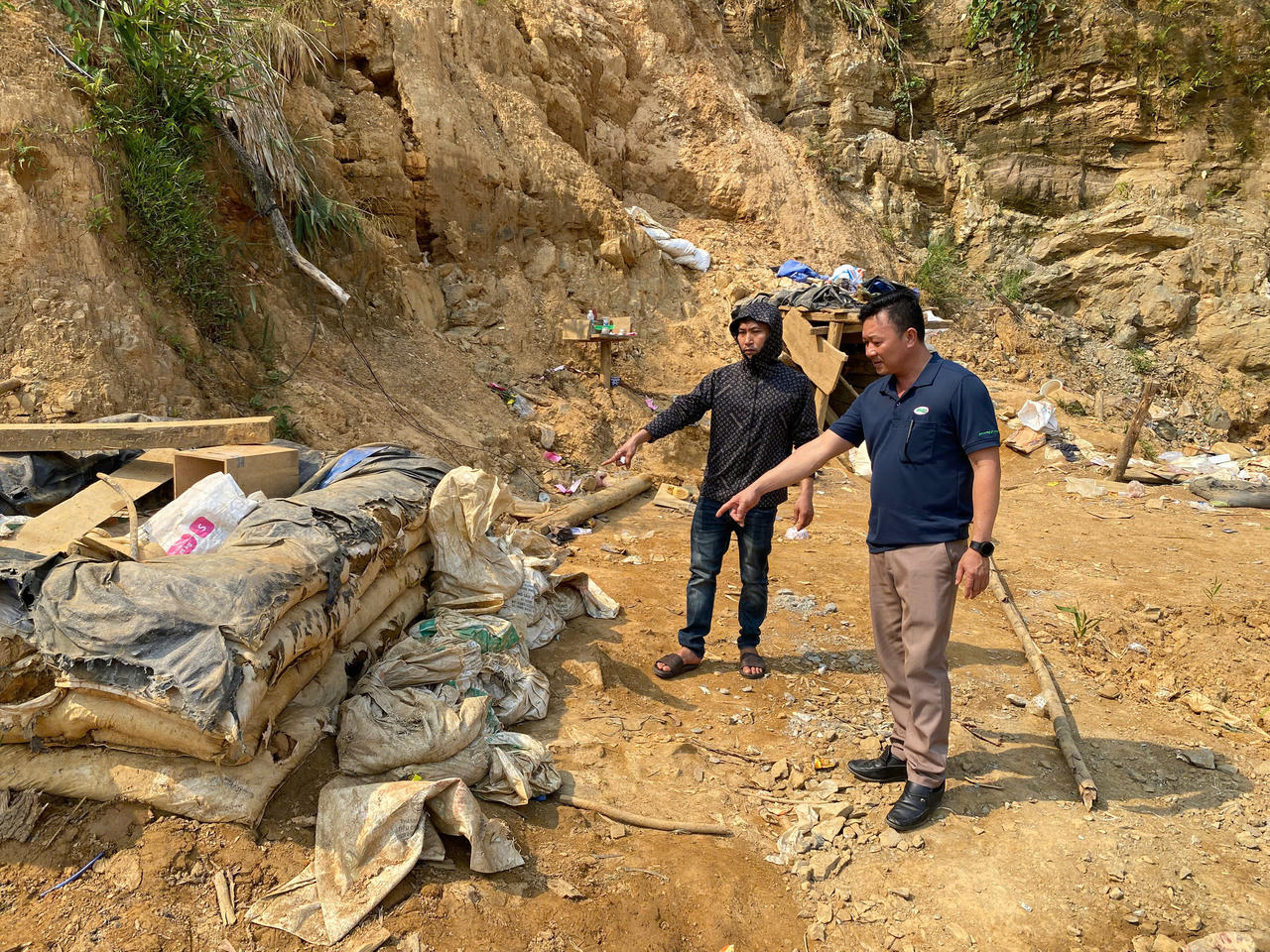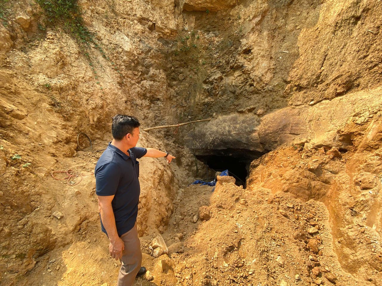 Kiểm tra tại hiện trường khu vực khai thác có diện tích khoảng 1.000 m2 bị đào xới nham nhở, địa hình đồi đất bị biến dạng, có 2 hầm được đào sẵn trước đó; tại cửa hầm có 14 bao quặng có khối lượng 262,5 kg; xung quanh khu vực phát hiện có 3 máy phát điện, 3 máy nổ, 2 máy bơm không khí vào hầm được chôn lấp dưới các hố sâu.