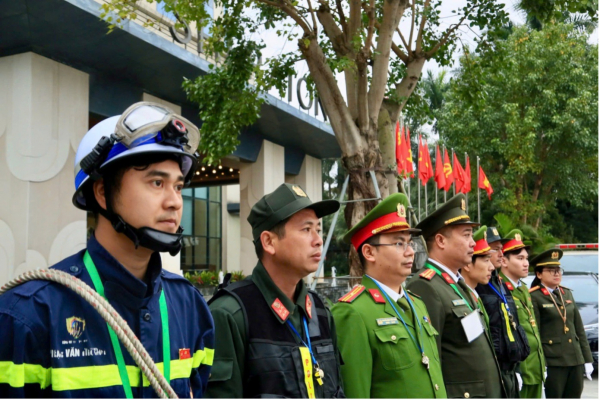 Các lực lượng chức năng phối hợp triển khai phương án bảo đảm an ninh, an toàn tại khu vực trọng điểm.
