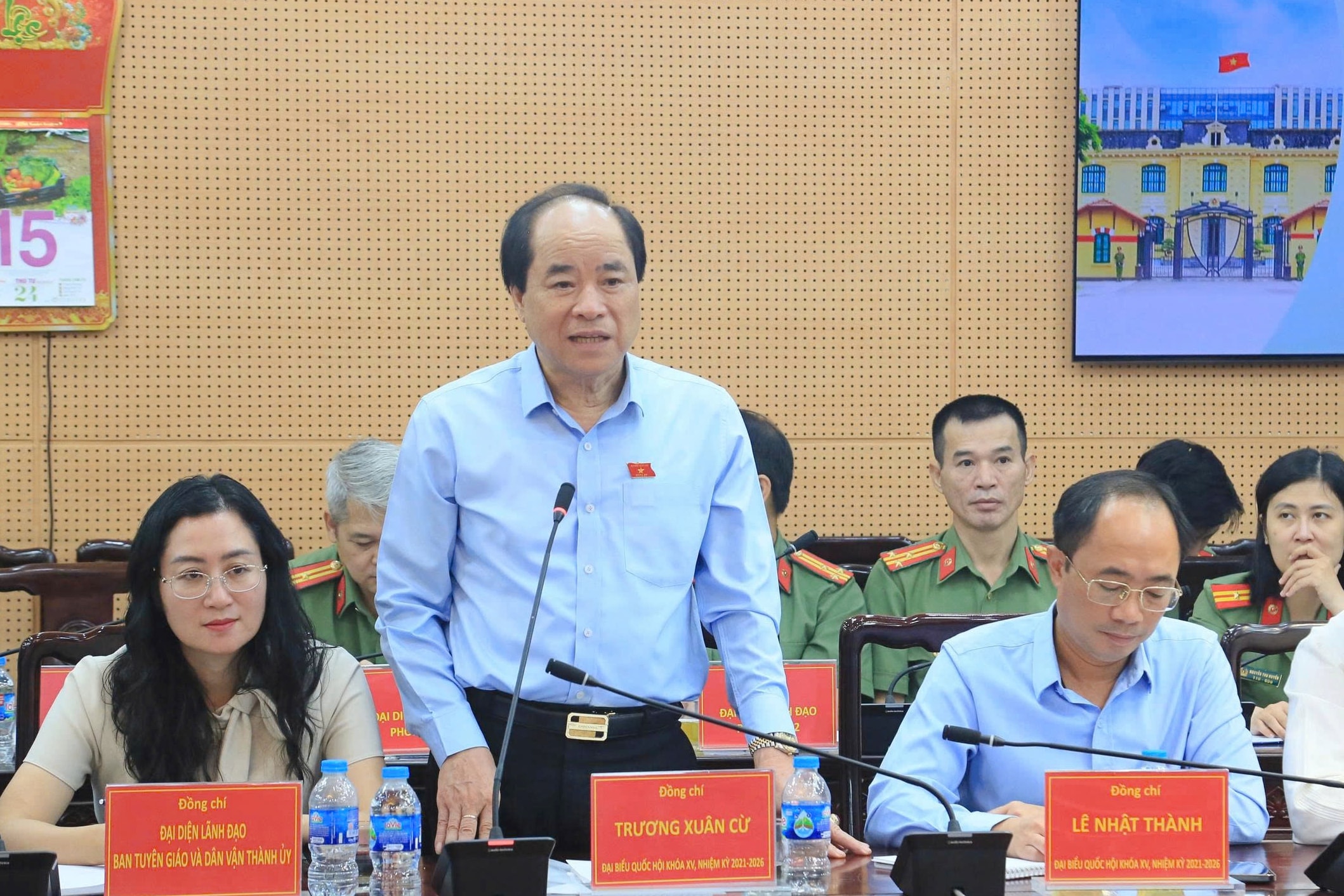 ĐBQH Trương Xuân Cừ đề nghị cần tiếp tục rà soát, bảo đảm tính thống nhất của hệ thống pháp luật, tránh chồng chéo; bổ sung các quy định tạo hành lang pháp lý đầy đủ cho lực lượng Công an trong đấu tranh phòng, chống tội phạm, nhất là tội phạm công nghệ cao, ma túy, tội phạm về môi trường.