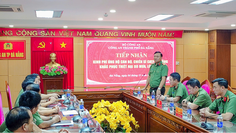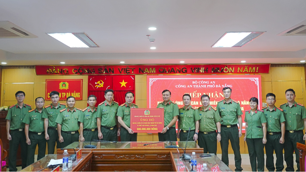 Tại đây, Công an TP. Hà Nội đã trao 500 triệu đồng hỗ trợ Công an và Nhân dân Đà Nẵng khắc phục hậu quả sau bão lũ.
