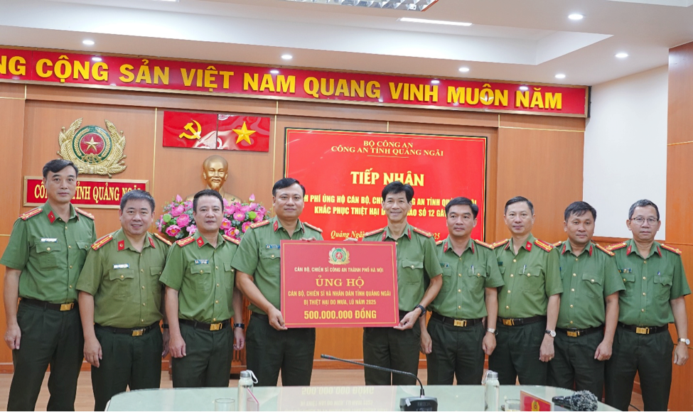 Phát huy truyền thống “Tương thân tương ái – Lá lành đùm lá rách”, Công an TP. Hà Nội đã phát động mỗi cán bộ, chiến sĩ ủng hộ một ngày lương, đồng thời trao tặng 500 triệu đồng hỗ trợ Công an và Nhân dân tỉnh Quảng Ngãi sớm vượt qua khó khăn, ổn định cuộc sống, khôi phục sản xuất.