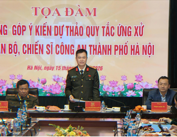 Phát biểu khai mạc tọa đàm, Đại tá Nguyễn Ngọc Quyền, Phó Giám đốc Công an thành phố nhấn mạnh ý nghĩa quan trọng của việc xây dựng và hoàn thiện Quy tắc ứng xử của CBCS Công an Thủ đô trong bối cảnh tình hình mới khi không tổ chức Công an cấp huyện từ ngày 1/3/2025 và mô hình Công an cấp xã mới chính thức hoạt động từ ngày 1/7/2025; khẳng định Công an TP Hà Nội trân trọng, tiếp thu đầy đủ các ý kiến đóng góp với tinh thần chân thành, thẳng thắn, khoa học, nhằm hoàn thiện Dự thảo, góp phần phát huy hiệu quả phong trào thi đua “Ba nhất”, xây dựng lực lượng Công an Thủ đô ngày càng trong sạch, vững mạnh, chính quy, tinh nhuệ, bản lĩnh, nhân văn, “vì Nhân dân phục vụ”.
