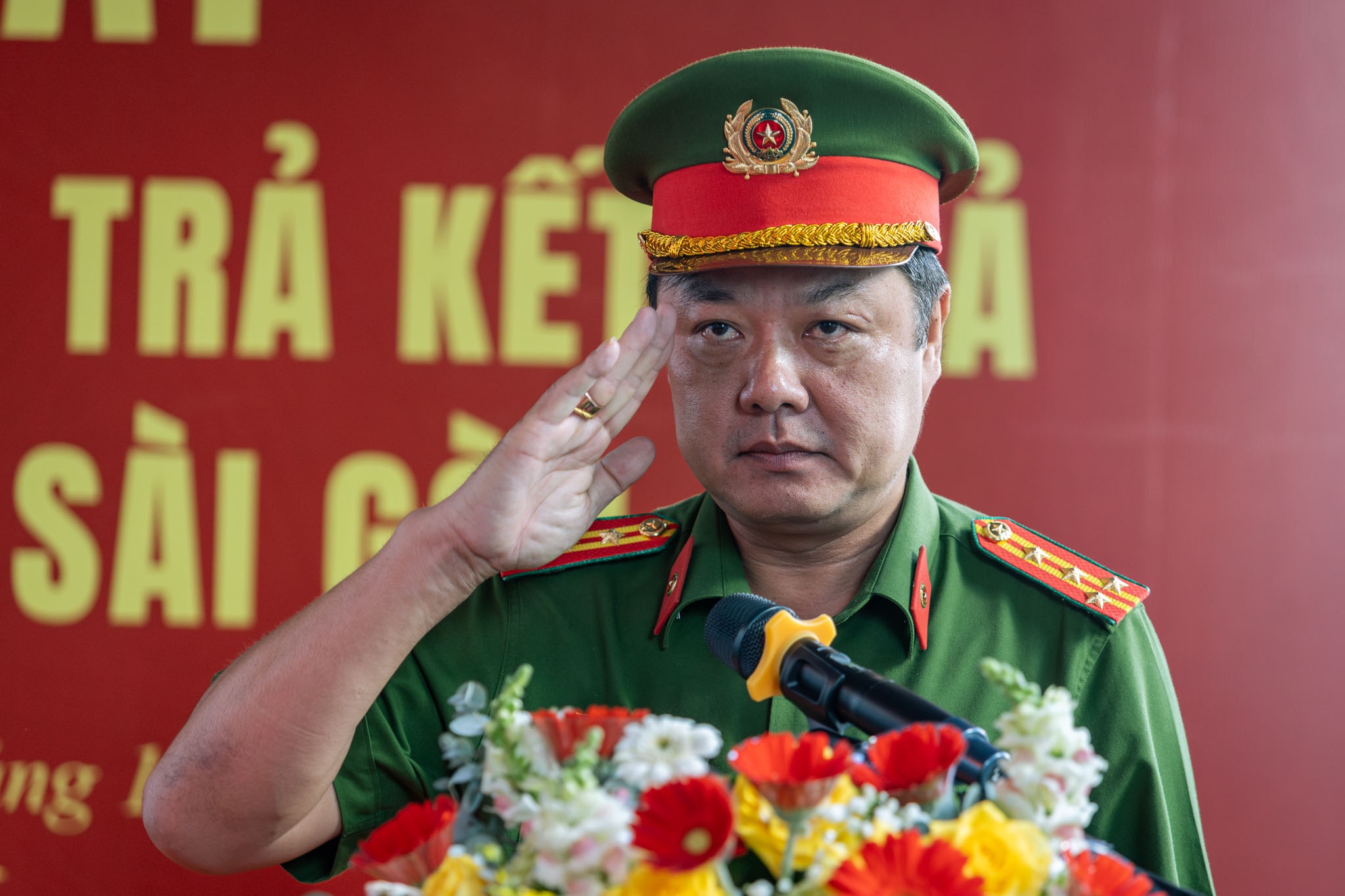 Đại tá Nguyễn Đình Dương, Phó giám đốc Công an TP.HCM, phát biểu tại lễ ra mắt, nhấn mạnh ứng dụng mạnh mẽ công nghệ số, hướng dẫn công dân thực hiện thủ tục hành chính qua dịch vụ công, tài khoản định danh VNeID, đặc biệt là người lớn tuổi và công dân chưa quen dùng công nghệ.