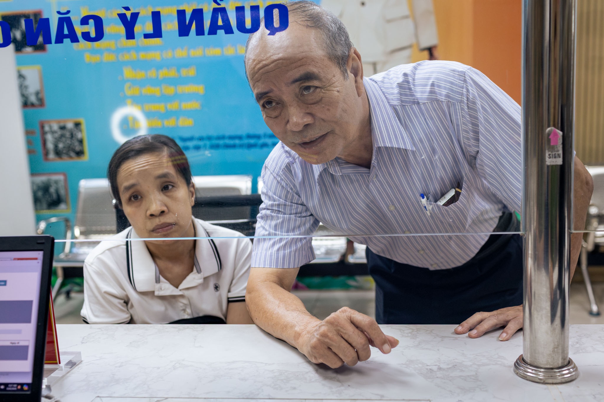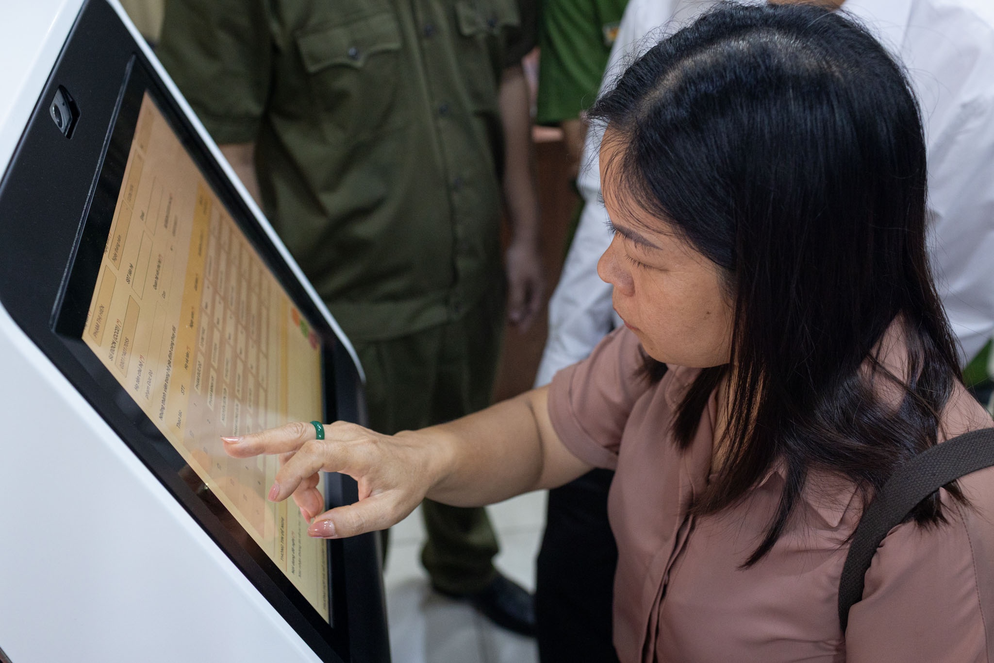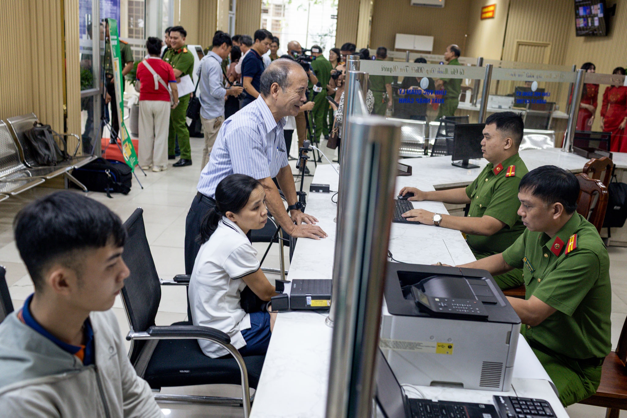 Cô Lê Thanh Xuân (66 tuổi) được hướng dẫn làm thủ tục cấp đổi căn cước mới. Cô cho biết: "Việc chuyển đổi số giúp việc làm thủ tục nhanh gọn hơn. Những người lớn tuổi không rành công nghệ như tôi được các cán bộ hướng dẫn nhiệt tình".