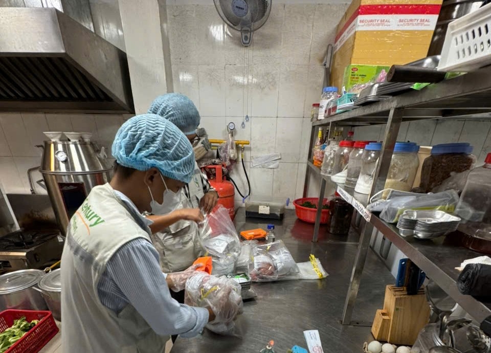 Thu mẫu thực phẩm kiểm nghiệm các chỉ tiêu vi sinh.
