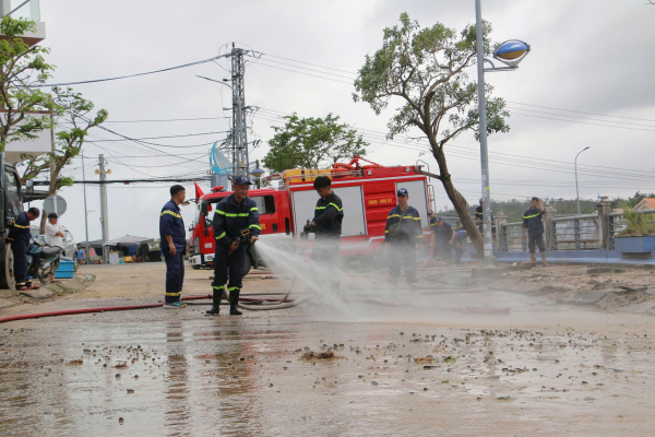 Đoàn được chia thành 4 tổ công tác phối hợp 4 đội khu vực của Phòng PCCC&CNCH Công an tỉnh Đắk Lắk. Thượng tá Đỗ Văn Kháng quán triệt tinh thần cho toàn lực lượng, yêu cầu tập trung cao độ cho nhiệm vụ. Ngay sau đó, lực lượng đã tiếp cận đầy đủ 18 xã phường, phối hợp địa phương dọn dẹp, vệ sinh, tẩy rửa sạch sẽ tại 33 trụ sở UBND cấp xã, trường học. Ngoài ra, lực lượng còn hỗ trợ cho một thôn, 3 nhà dân, 1 cây xăng và các khu vực bị ảnh hưởng.