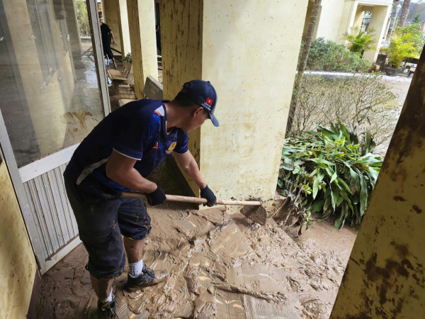 Rạng sáng hôm sau, đoàn chi viện đã đến khu vực Phú Yên cũ, điểm ngập nặng nhất tỉnh Đắk Lắk. Ngay lập tức, không để bà con chờ đợi, các cán bộ chiến sĩ đã nhanh chóng bắt tay vào việc.