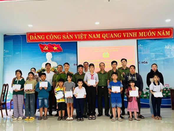 Công an phường Tân Phước trao tặng các suất quà Tết cho trẻ em có hoàn cảnh khó khăn.