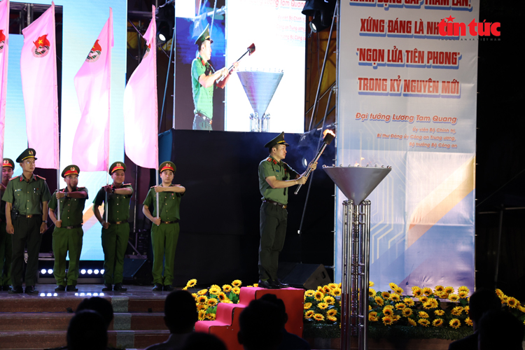 Điểm nhấn của chương trình là nghi thức “Tiếp lửa truyền thống” kết nối từ Bến Nhà Rồng - nơi khởi nguồn hành trình cách mạng của Chủ tịch Hồ Chí Minh. Ngọn lửa thiêng được thỉnh về, thắp sáng tại sân chào cờ Công an Thành phố trong không khí trang nghiêm, thể hiện sự tiếp nối lý tưởng cách mạng, bồi đắp bản lĩnh chính trị và tinh thần trách nhiệm cho thế hệ trẻ.