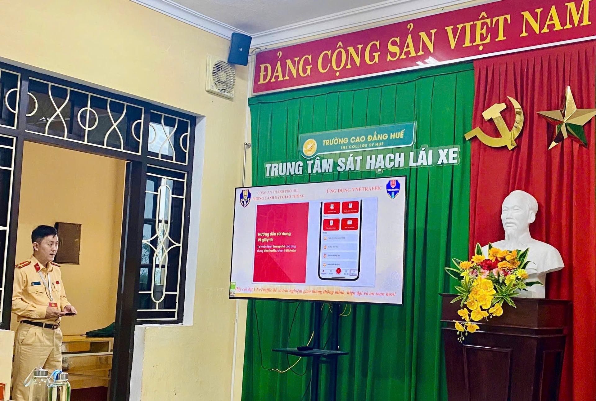 Hoạt động được triển khai nổi bật tại kỳ sát hạch lái xe tổ chức ở Trung tâm sát hạch lái xe thuộc Trường Cao đẳng Huế, nơi 189 thí sinh được cán bộ Công an trực tiếp hỗ trợ cài đặt và sử dụng ứng dụng.