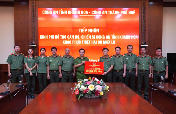 Ngày 28/11, đoàn công tác Công an TP Huế do Đại tá Dương Văn Thoan, Phó Giám đốc Công an TP Huế làm Trưởng đoàn đã đến thăm và trao kinh phí hỗ trợ cho cán bộ, chiến sĩ (CBCS) Công an tỉnh Khánh Hòa - địa phương bị thiệt hại lớn trong đợt mưa lũ vừa qua.